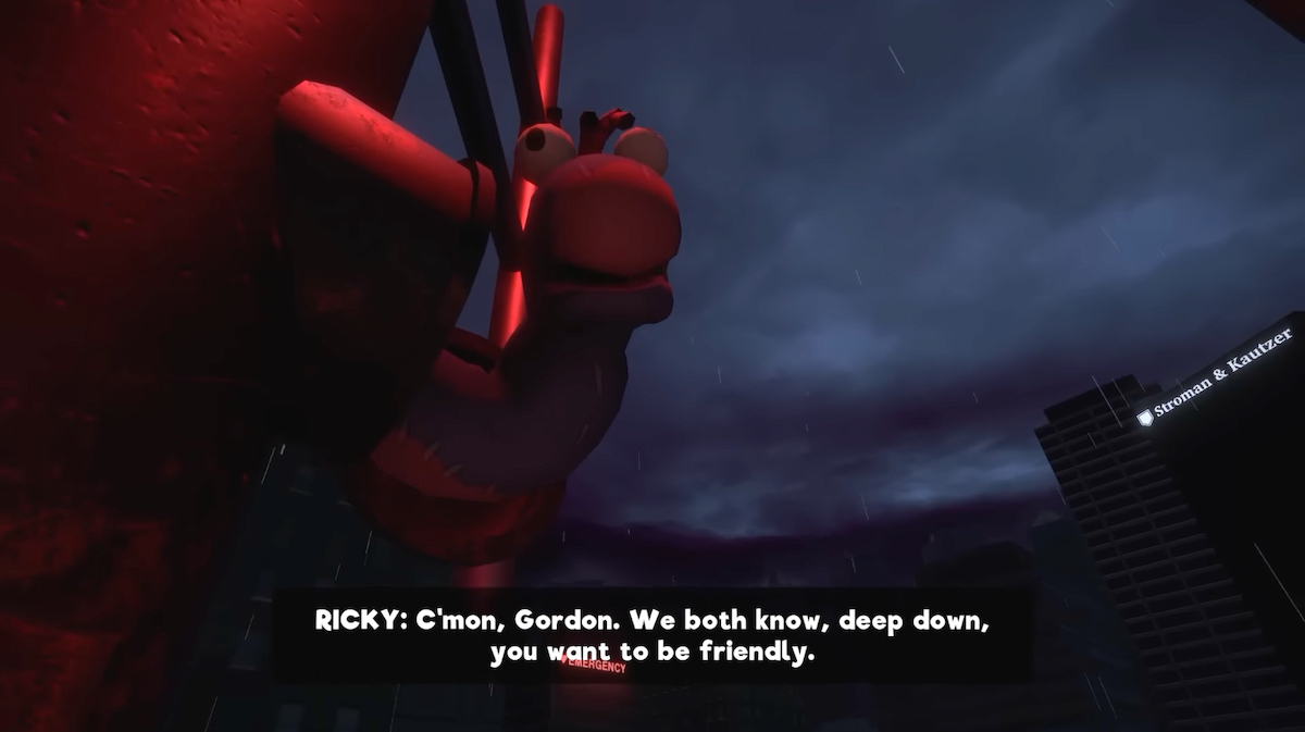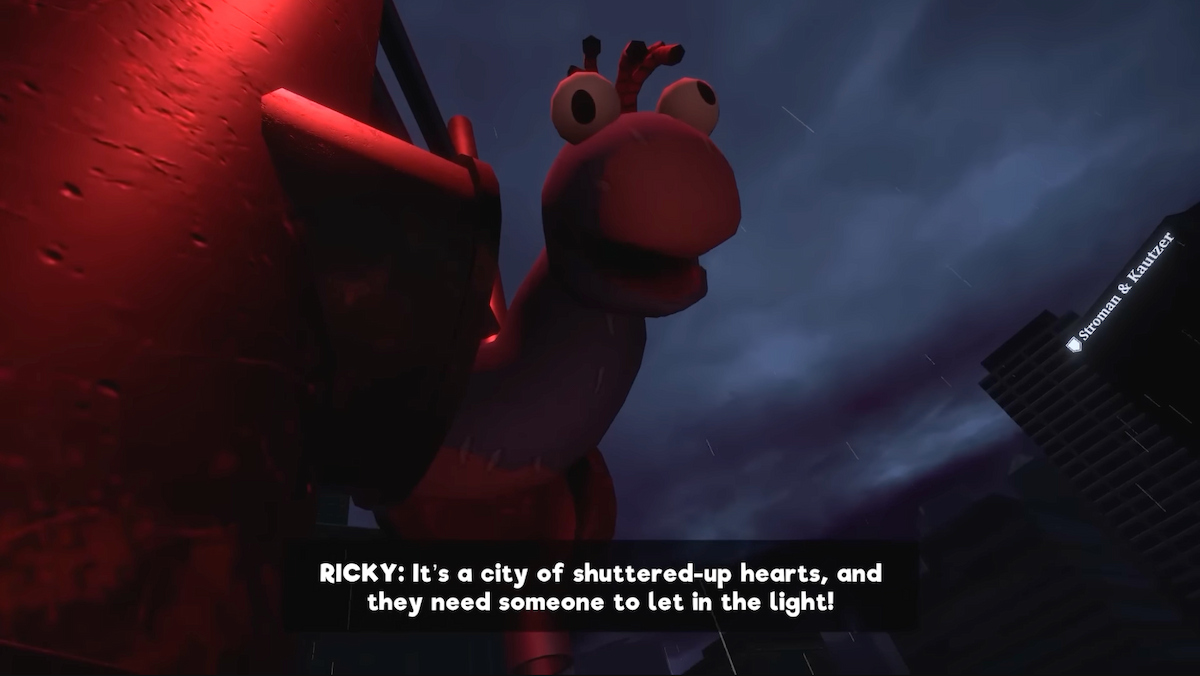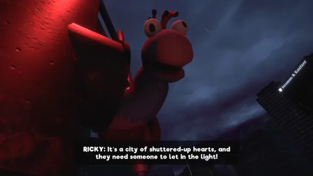 Gordon meets the star of the show Ricky near the beginning, a sock puppet who repeatedly discourages him on his mission to shut down the broadcast. He claims they are trying to bring hope back to the people by broadcasting again, while Gordon seems set on simply doing his job.