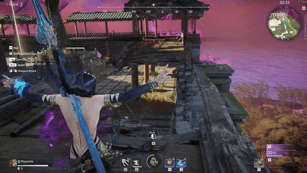 In addition to all of the things Naraka: Bladepoint throws at beginners, you also need to familiarize yourself with the various mechanics around the map. The simplest mechanic to understand is the quest scrolls. You’ll find these floating around the map. Different colored scrolls will give you different quests. Purple scrolls will send you to kill another player. Gold scrolls involve performing less aggressive tasks such as hitting a bell, meditating, or opening a specific chest. Just look for the marker locations on your map to see how to complete different quests.