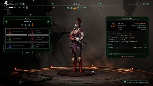 • Signature Skill: Heavy Barrage – 30 AP; an overwatch-type skill where you lay down fire on all enemies that move for three meters within the affected zone.