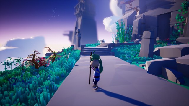 At the start and middle of most areas, you’ll get to the main areas via connecting ones. Once you get the surf ability, you’ll mostly be riding your staff through these. The vast majority of the game is a collect-a-thon, though. Omno runs in Unreal 4 and it’s easy to get over 100 fps due to the simplicity of the graphical features. I did have a single crash, though, which required a restart as it caused my graphics drivers to repeatedly time out until I restarted my PC. There’s also no way to turn the music down or off, which might bother some people.