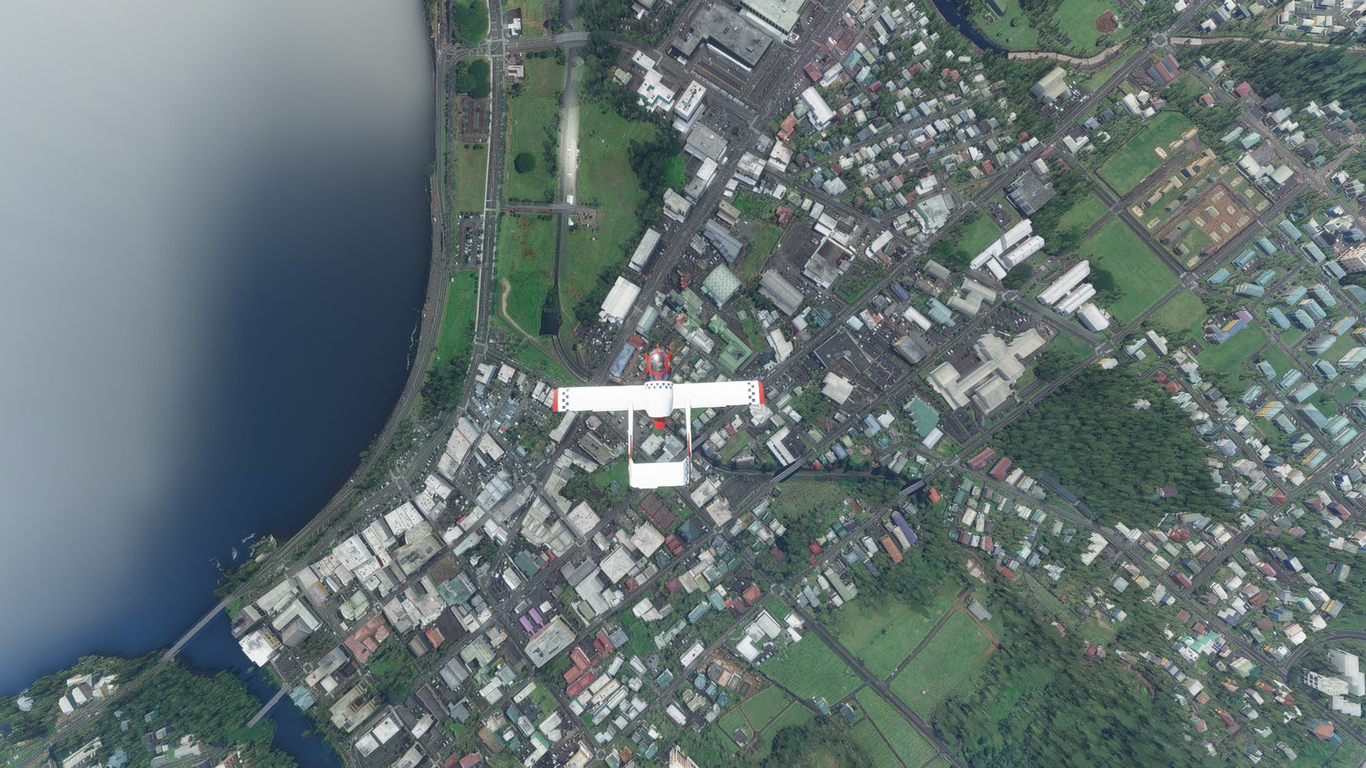 After taking in the sights of the peak of Mauna Kea, I turned back towards the direction of the airport, which is conveniently a straight shot from the peak of the volcano. This allowed me to make use of the altitude I had gained. Inspired by my recent time with Aerosoft’s Glider Simulator, I decided to see how the Optica would behave as an unpowered aircraft. Surprisingly, it didn’t disappoint. While a rapid descent from over 14,000ft back down to sea level wasn’t enough to get the airspeed indicator over 100 knots, the Optica did gracefully make its way back down to the ground at Hilo Airport using just the power of the wind flowing over its wings. I also forgot to mention that Hilo Airport has the very interesting ICAO code of PHTO — if this isn’t a more (accidental) appropriate testing environment, then I don’t know what else is.
