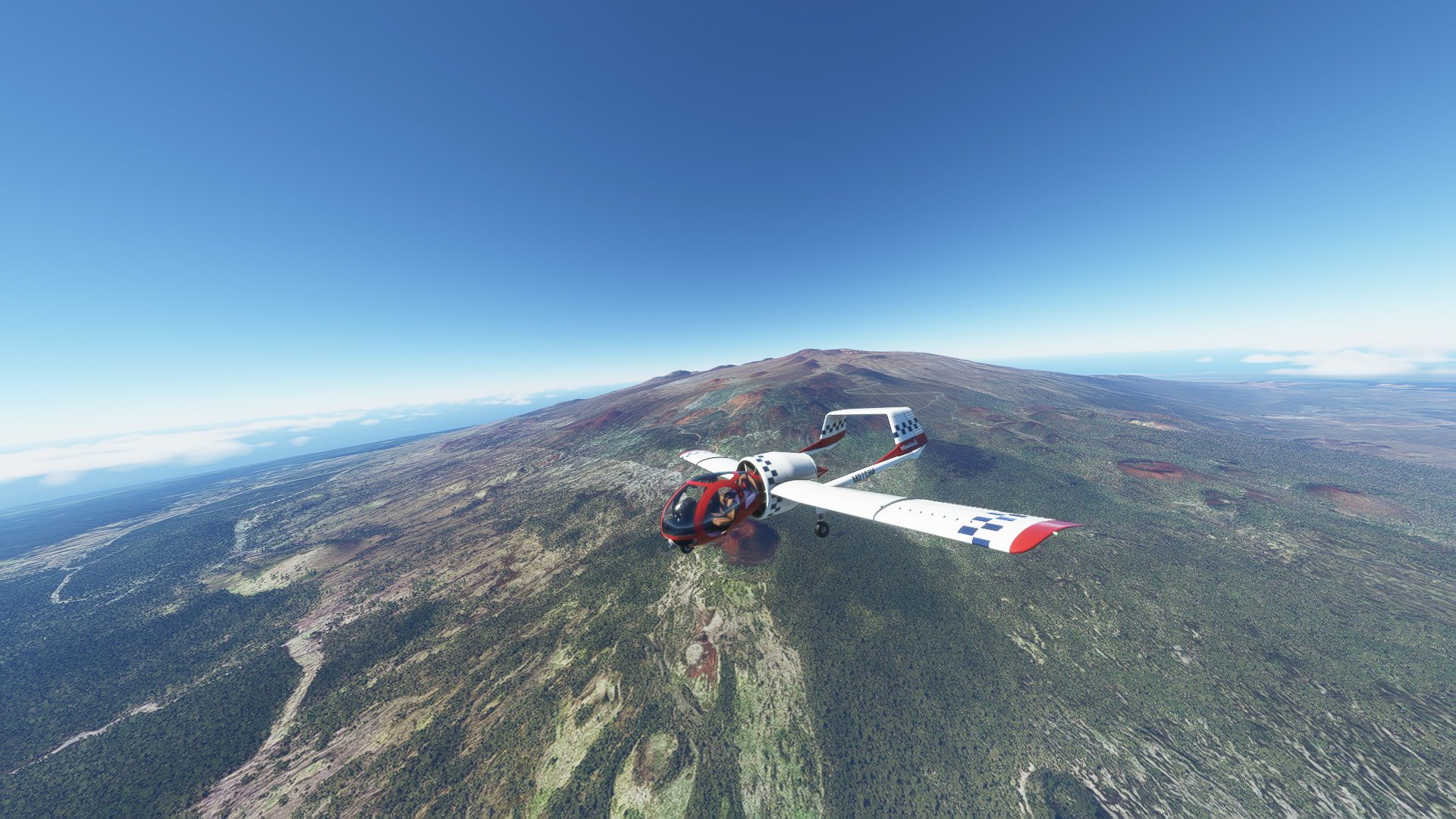 Optica’s bug-eyed shaped dome of a cockpit wasn’t an awkward artistic choice. It’s functional, not fashionable. And it certainly does work well. With a 270-degree field of view, the Optica provides a full-on observational deck to enjoy. If you ever thought the window by your seat in an airplane was too small, then this is literally the antithesis of that. With such a wild field of view, the Optica is best paired with a VR headset, which unfortunately I don’t own. Nevertheless, soaking in the sights of Mauna Kea and the surrounding island was still breathtaking thanks to Microsoft Flight Simulator’s great satellite imagery and powerful graphics engine.