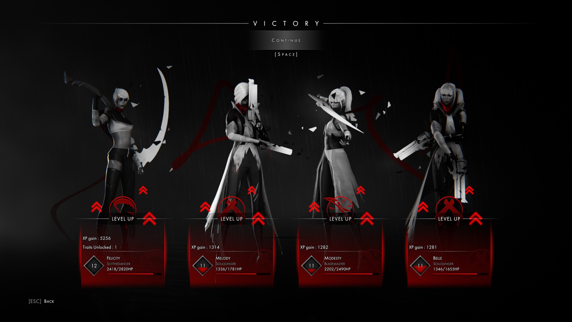Othercide‘s Ritual missions are rare, and the goal is to eliminate the unique enemy called the “Lost Soul.” The Lost Soul has a ton of HP and it begins charging an unavoidable spell that wipes the entire team. This deadly spell usually finishes charging after five “regular” turns that a Daughter can take (aka. not delayed by burst status).