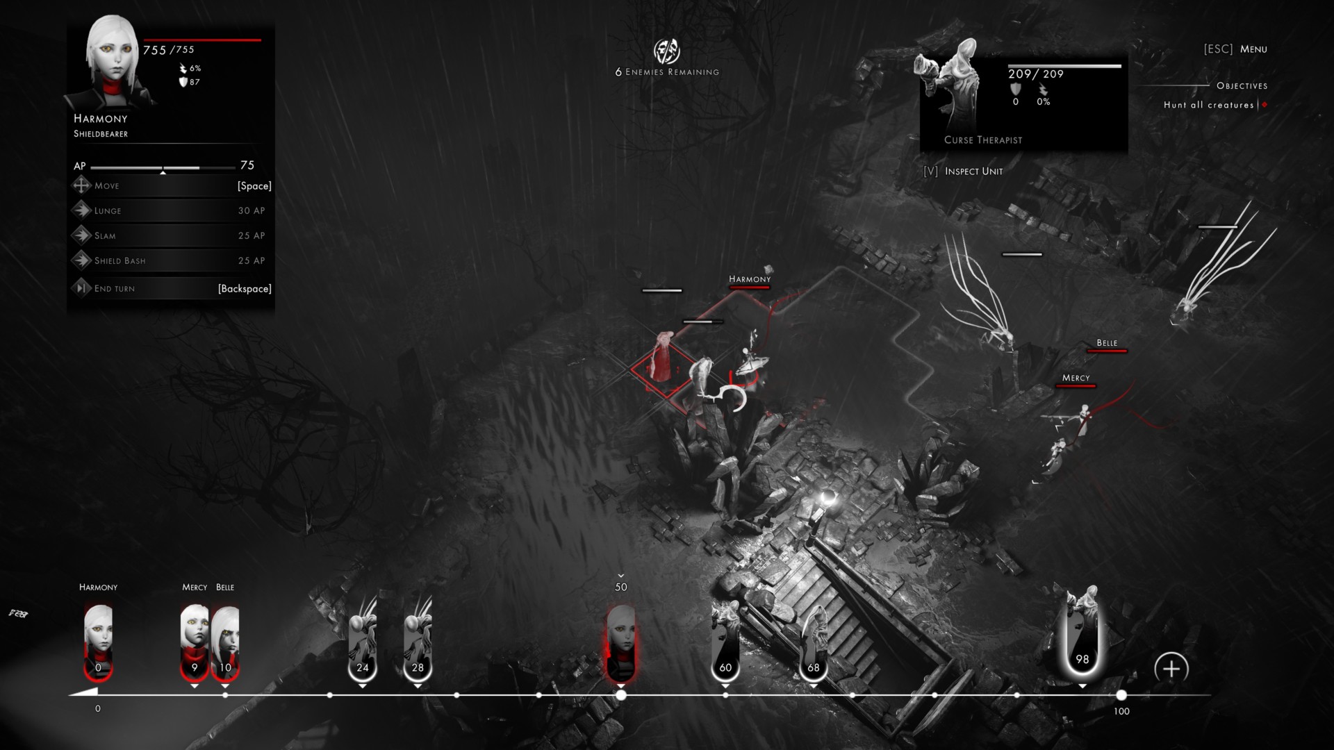 Hunt missions are the easiest type in Othercide since they’re so simple and straightforward. Think of them as your usual “elimination” or “skirmish” modes in turn-based tactical games since all you need to do is kill a specific number of enemies on the map.