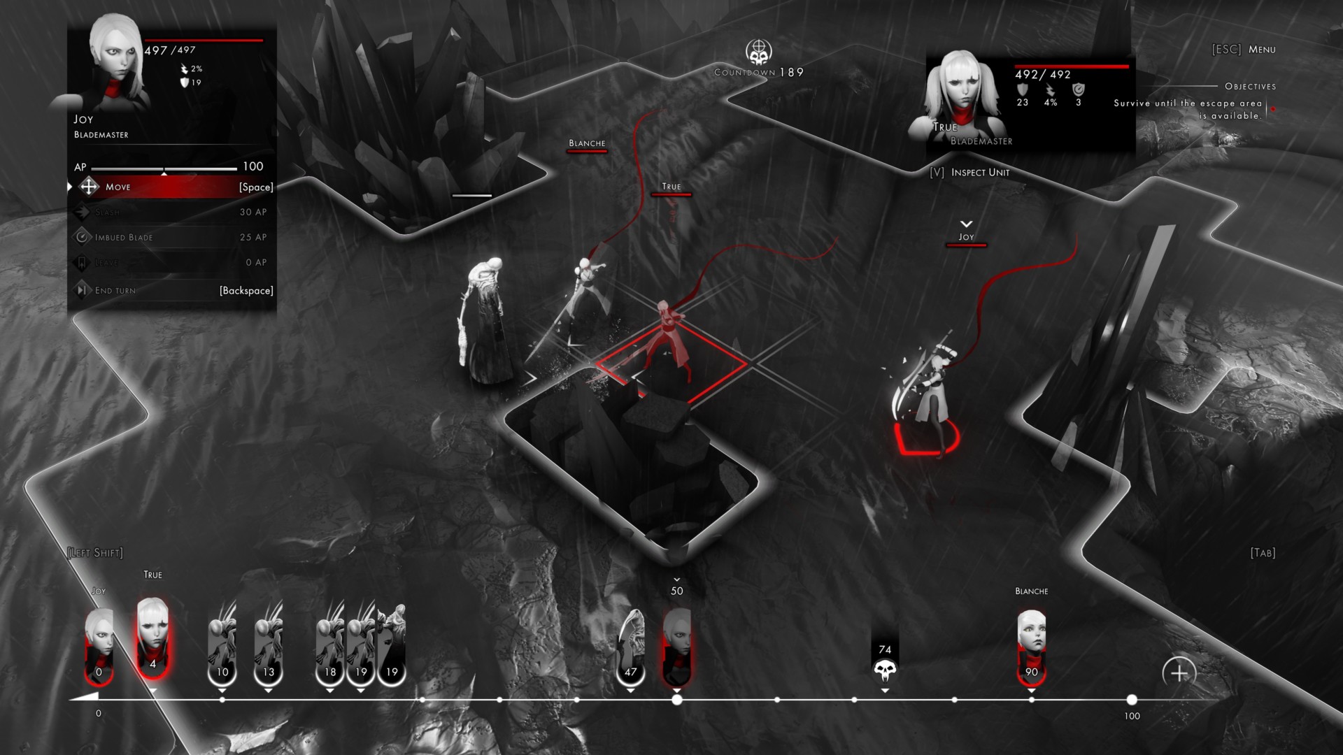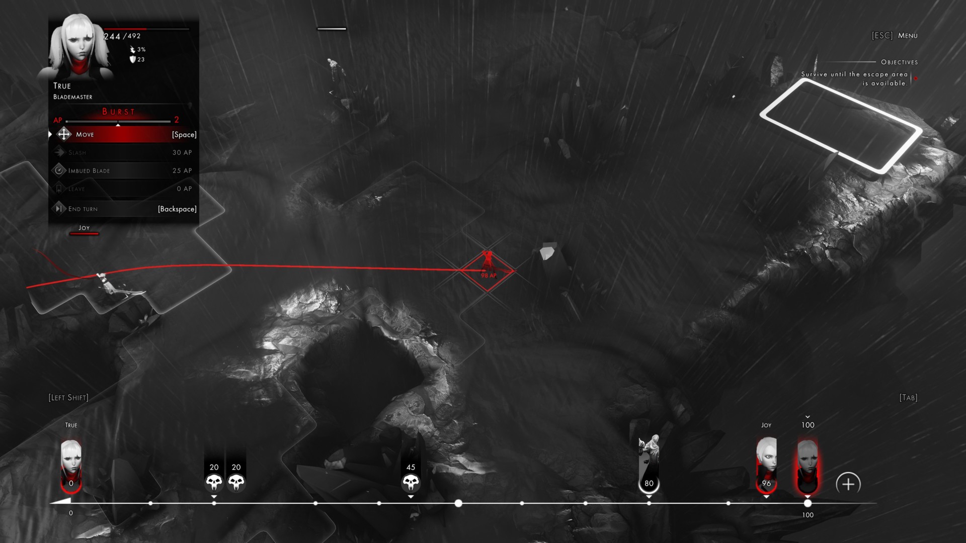 The goal in Othercide‘s survival missions is to play defensively until the HUD counter reaches zero. That’s when you’ll see the evac point that allows you to exit the level. The thing is, enemies will spawn in droves all over the map, so you could find yourself cornered until all hope is lost.