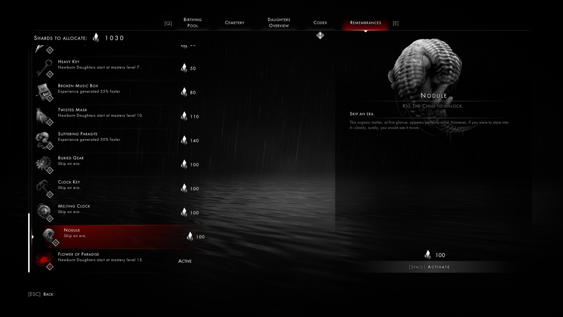 Note 2: Undertaking a new recollection and having leftover shards will let you activate new Remembrances during your current playthrough as long as you meet the cost requirements.
