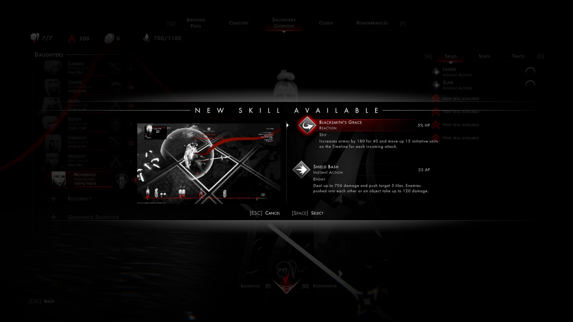 As for the memories or mods you find in Othercide, I chose the ones that add a bit of delay to further complement the Shieldbearer’s skills like Slam (which is your main go-to ability to mess around with enemy turns). Alternatively, you could use memories that rupture armor or those that increase the damage that an enemy can take.