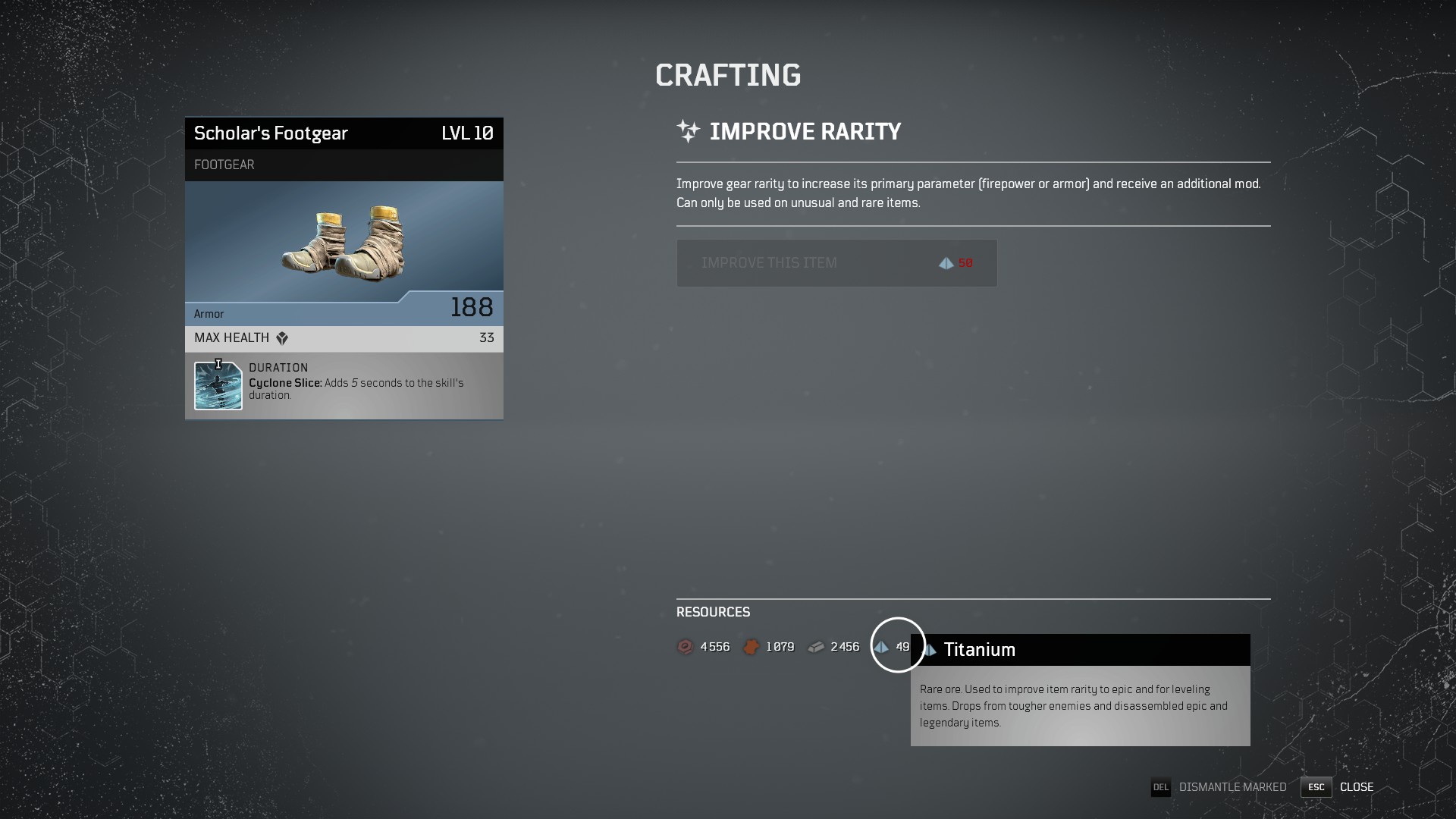 To be clear, you can sell a couple dozen of equipment pieces in Outriders only to still not get enough scrap back to purchase a single item. Similarly, you’ll need titanium to improve the rarity or level of an equipment piece, but it requires a large amount of that resource. This effectively means that, if you want to ever be able to afford anything when you need it, you’re going to have to make choices between selling your high-value items or disassembling them. And when you’ve got an inventory full of gear, that choice can be a bit of a pain.
