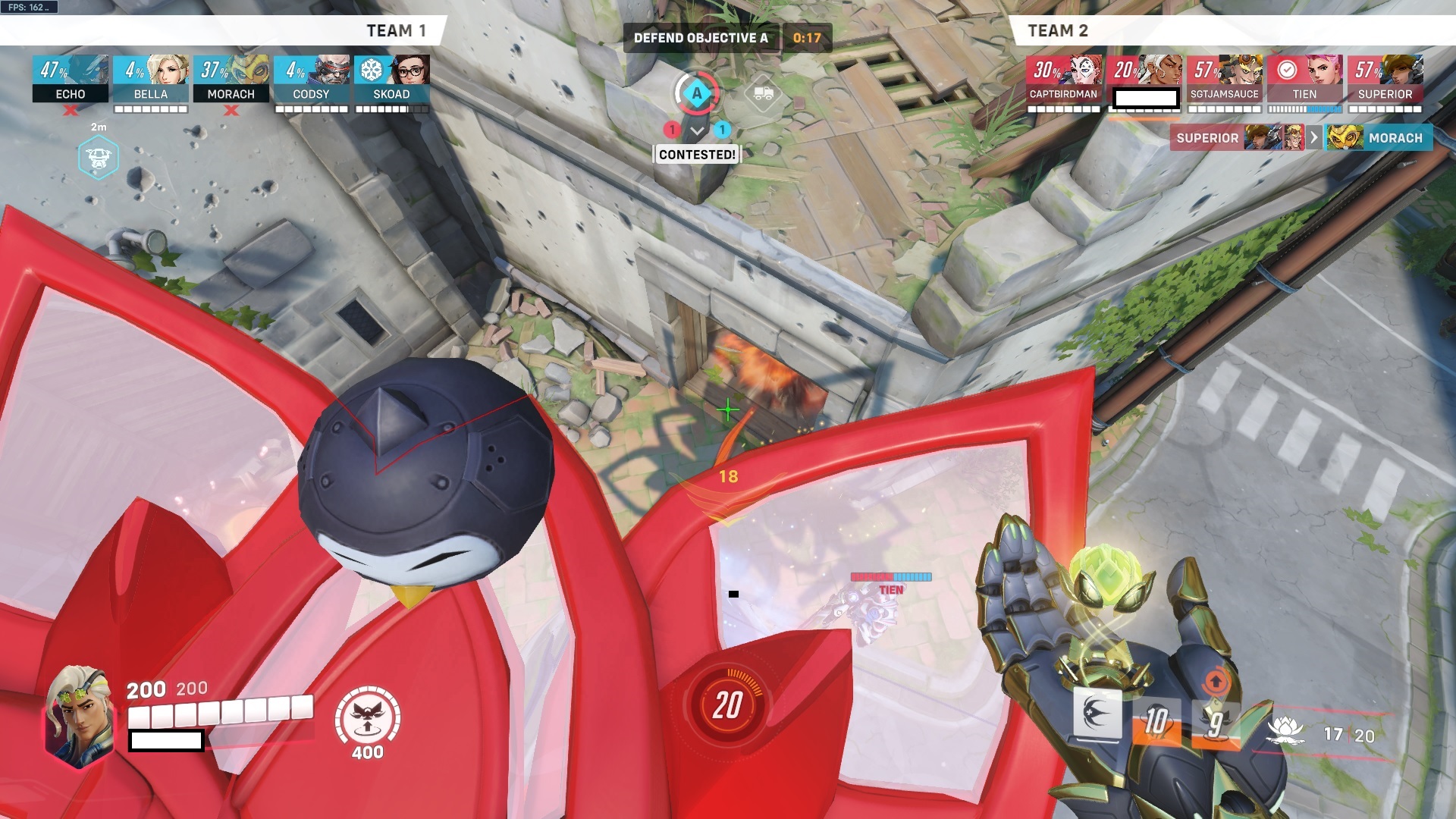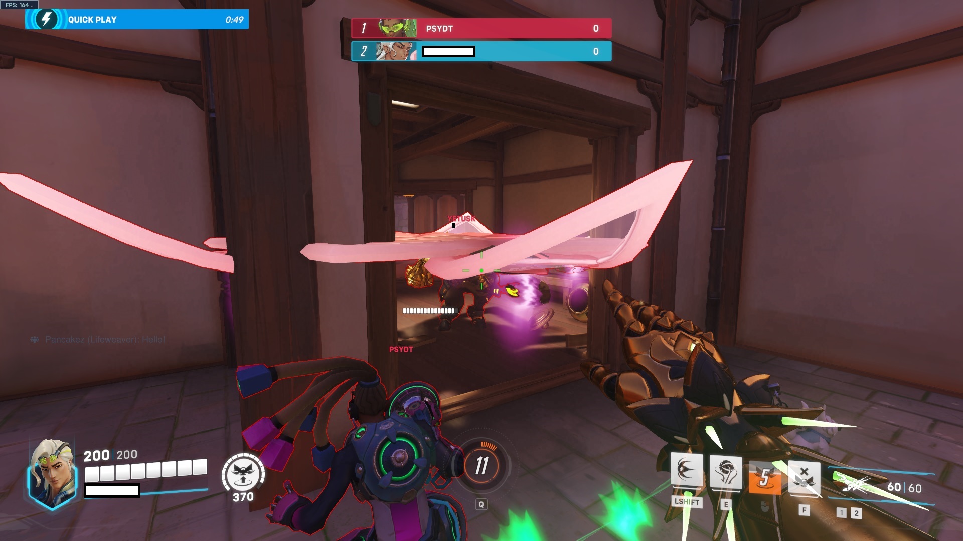 Lifeweaver has a ‘Shift’ button that allows him to dash away, giving him a tiny bit of burst healing while also giving him an escape option. This dash does not go too far, but there are ways to extend this dash to maximize its mobility potential. Using jump before dashing gives him a little more lift in his mobility, and you can use some momentum from his dash to do a little mini-hop after using the ability.
