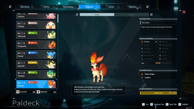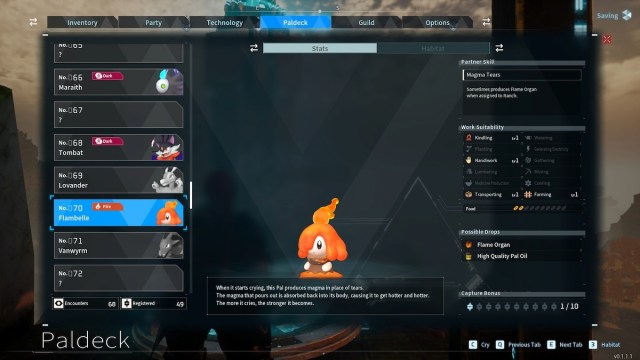 To make life easier for you, instead of one giant list of all Pals, this list will cover only the Fire-based Pals. They’ll typically be good at Kindling, but they can also provide other skills you might find useful.