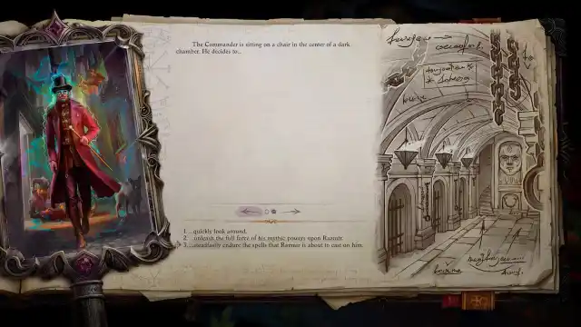 Once you discover Razmir is the one behind all of this celebration, go through the portal and you will arrive at his palace. However, the very first section of this stronghold is text RPG. This means that you will have to travel around the palace via dialogue options, with every consequence happening via a block of text.