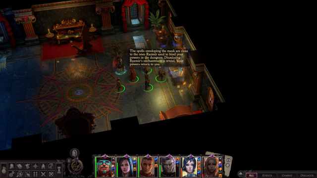 Thankfully, Rovus – one of our allies in Kenabres – jumped through the portal just after we did and was able to infiltrate the enemy lines by disguising himself as a cultist. He will unlock the door of our room and allow us to tackle the Razmir Palace stronghold. This time, with graphics and real fighting at last.