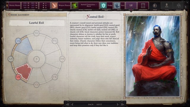 - Alignment – A few prestige classes in Pathfinder: Wrath of the Righteous can’t be selected unless a character is of a particular alignment. As such, you really want to plan ahead. Sometimes, it’s better to start out being Lawful Good or Chaotic Evil just to meet this requirement as opposed to selecting multiple dialogue choices in the hopes that your alignment will be altered during the campaign.