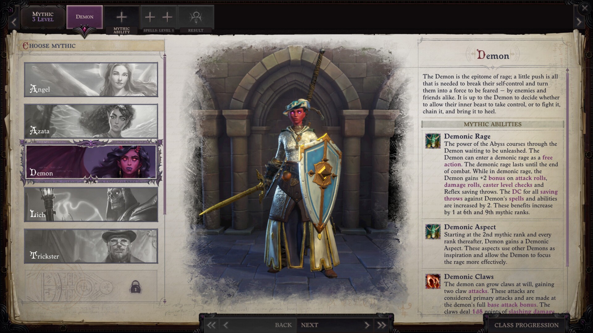 - Next, you’ll get to choose some of the mid-game options near the end of Act II (i.e., Angel, Demon, Aeon, Azata, Lich, or Trickster). You’ll follow this from Mythic Rank 3 onward.