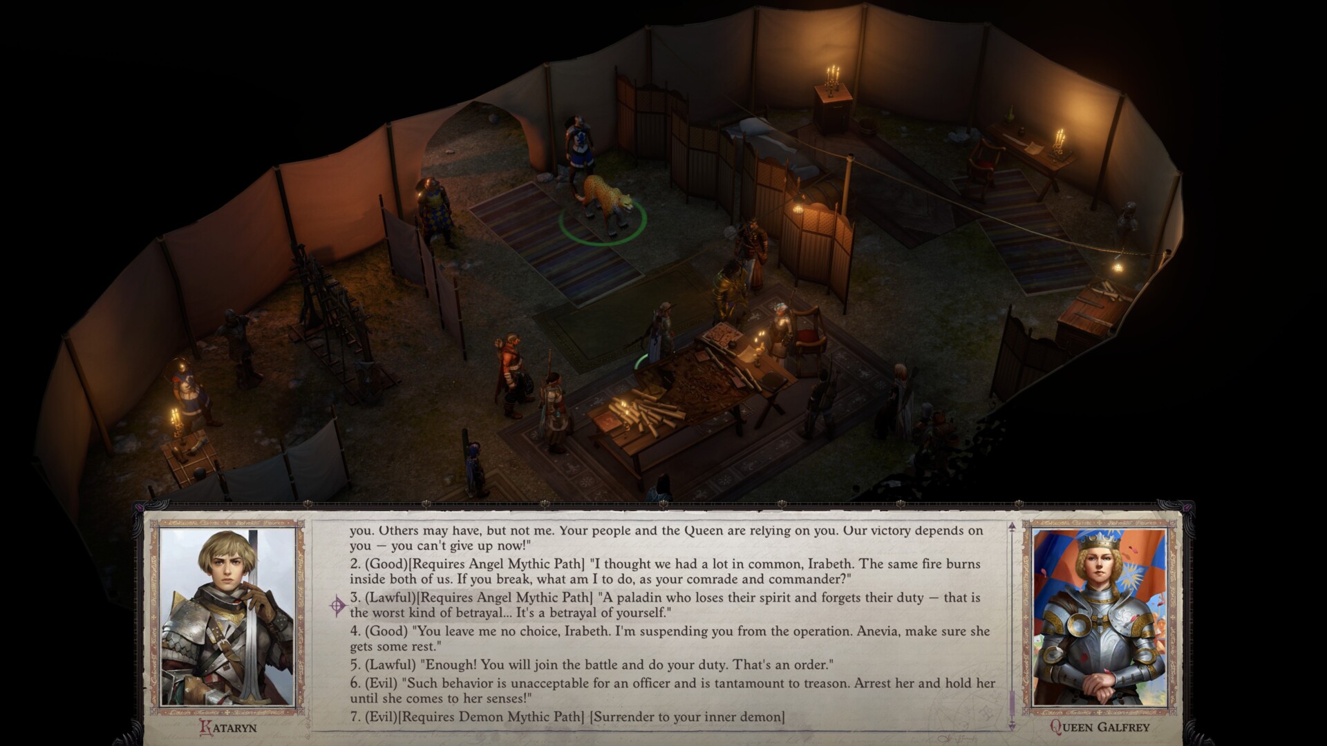 Again, this is fine as well (for the most part). For example, if you already unlocked the Angel Mythic Path and an option to reply with leanings towards the Demon pops up, selecting the latter won’t lock you out from the former. In the same vein, if you already have the Azata Mythic Path option and you keep selecting it as a response whenever it comes up, it’s not going to prevent you from picking, say, the Trickster Mythic Path at the end of Act II.