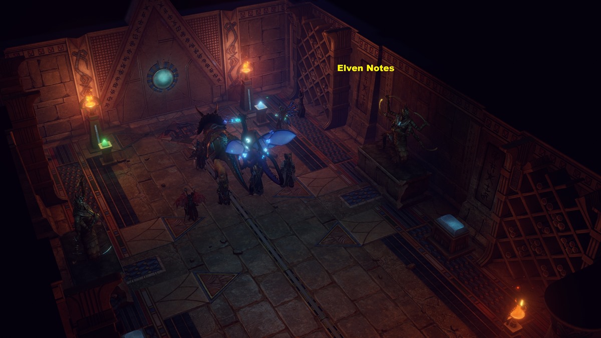 - Then, head all the way to the back where you can grab a Blue Binding Source and a Green Binding Source. The shelf also has an Elven Notes document for the Storyteller. Do be forewarned that picking up the crystals here will cause traps to start firing from the walls.