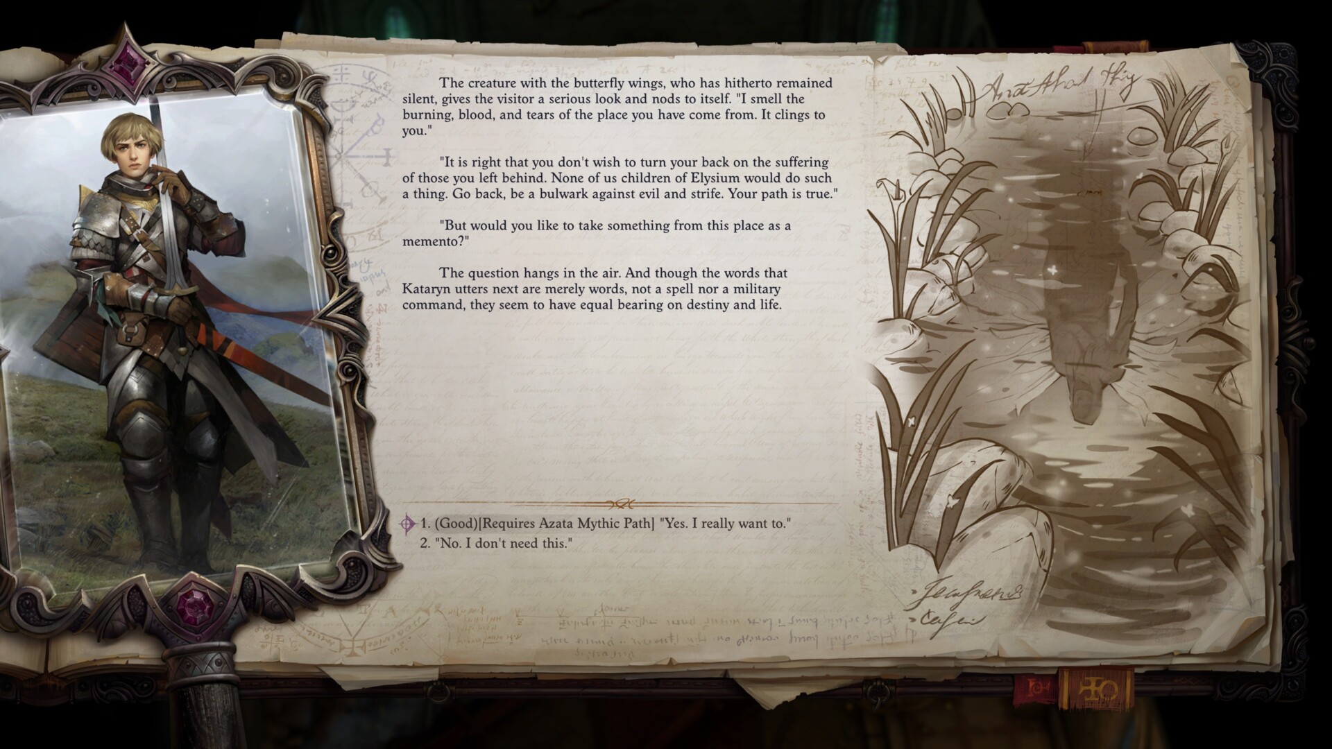 Return to the Temple of Desna (#1) and talk to the trio. Tell them that you’re “stopping for a minute/I’ll gladly sit with you.” Then, when prompted, pick “Chaotic: Sing the song after Aranka.” This will cause a storybook sequence where you’ll be able to unlock the Azata Mythic Path for future use.