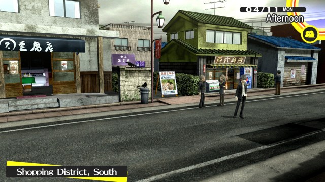 The render scale is automatically cranked up to 200% by default, making the game sharp and clear even without anti-aliasing on. You can also turn shadows on and off (not the enemies, wise guy) and change their quality as well. You’ve also got three levels of anisotropic filtering you can have on, plus anti-aliasing. Persona 4 Golden doesn’t tell you what sort of AA it’s using, but you might not even need it due to the render scale. Let’s take a look at some shots with features turned to max and low.