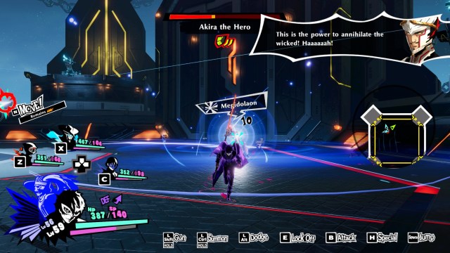 Akira the Hero is a quick and nimble target, but his weaknesses give you plenty of opportunities. Like with Akane’s Joker you might want to take this a bit slower: he’s a smaller, human target, and he moves fast and hits hard and in combos. Nonetheless, his moves are pretty well telegraphed barring the beams and the Justice Sword (until you get the hang of which one does what.)