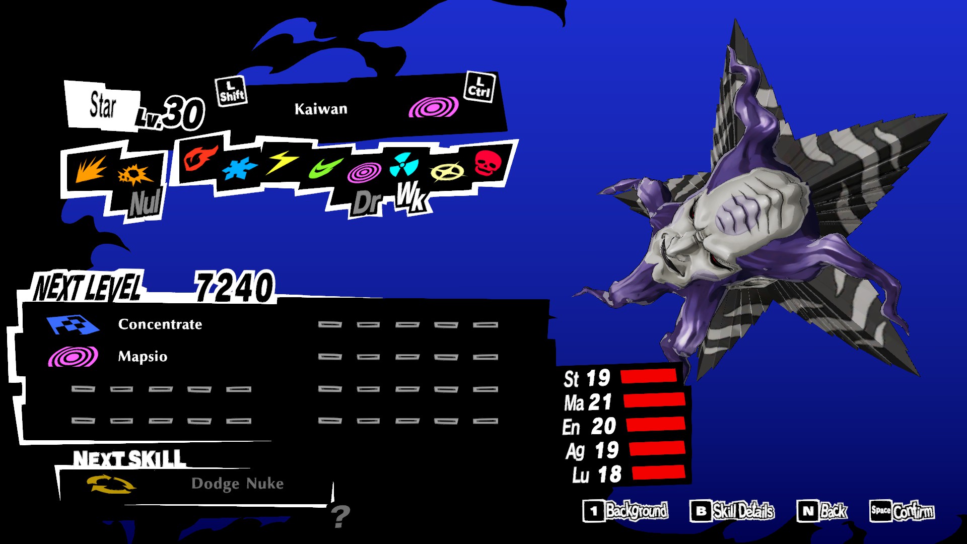 This one’s a bit different from the first two. You possibly have a Kaiwan in your party already, as you fight them in Jail 3. Still, you’re going to want to go the typical fusion route. You’ll have found masks for Principality and Setenta in Jail 3 and, guess what? The two can be fused together to make Kaiwan. Principality learns Makouga, so you’ll be able to get Kaiwan locked and loaded without problem.