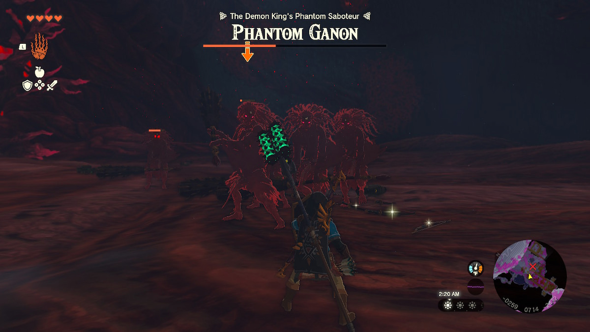 In The Legend of Zelda: Tears of the Kingdom, Phantom Ganon usually spawns as a brief overworld boss encounter after defeating a Gloom Spawn. But once you have beaten the main four regional questlines, you can do battle against a fully-fledged Phantom Ganon boss at Hyrule Castle, which essentially has you contending with five Phantom Ganons at the same time. Since you have the sage avatars at your disposal, you can let them distract at least four of the Phantom Ganons while you focus on just one.