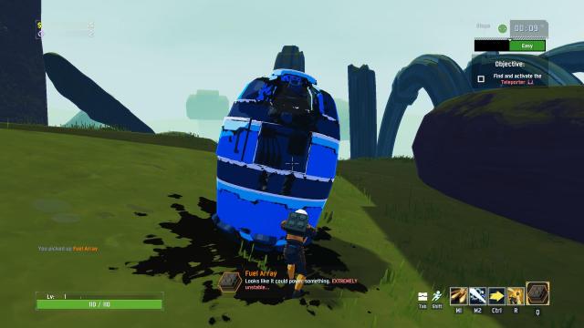 As with many of the others, this Risk of Rain 2 challenge is a delightful mix of simple and aggravating. First, you need to play as any character that starts in an Escape Pod — so no Acrid for you, I’m afraid (unless you’re in multiplayer, at least). Once you’ve spawned in on the first level, go around to the back of the Escape Pod and you’ll be able to take off the hatch and pick up the Fuel Array.