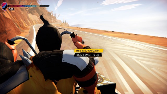 Calling Road 96 a game is a bit misleading, however. Each run is made up of five or so sections where your character meets with one out of a handful of other characters. Most of these are simple conversations, although you can select your responses, some of which promise to have a consequence down the road. Petria is ruled over by a “president” named Tyrack (it contains “Tyra” like “Tyrant,” and the game even pokes fun at this instead of picking a better name. Weak.) Anyone who runs afoul of President Evilface gets arrested, so you’ll need to be cognizant of that. Or just watch it like a first-person TV show, which is what this basically is.
