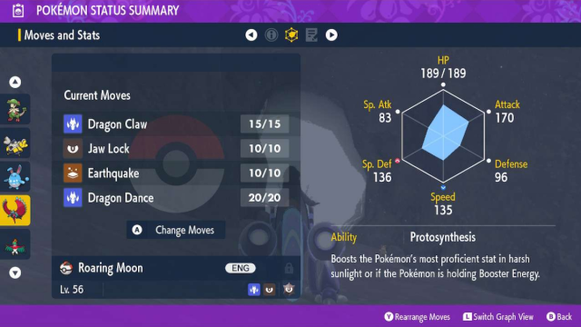 Thankfully, Roaring Moon isn’t without some flaws. For one its typing leaves it weak to Bug, Dragon, Fighting, Fairy, and Ice. Dragon, Fairy, and Ice are all common offensive types that should be covered by most teams. Its weakness to Fairy is particularly significant as it’s a 4x weakness.