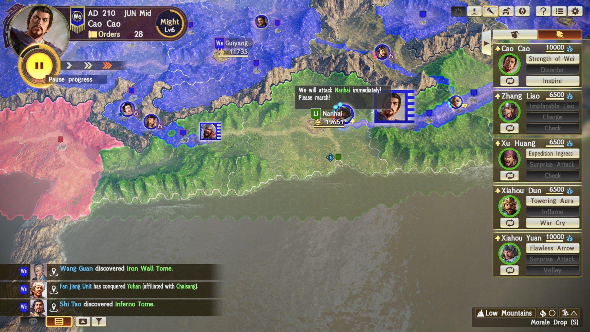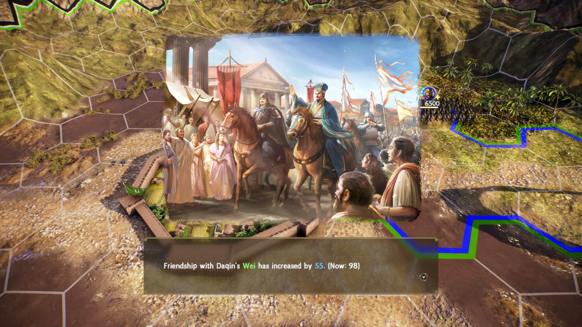 I can’t stress enough how long it took me to max out Cao Cao’s/Wei’s friendship with Anxi and Daqin. All the while, my overall experience was peppered with the same old problems — I was “relay-dancing with my armies” and “city-hopping with my ruler” just to make expansion more manageable.