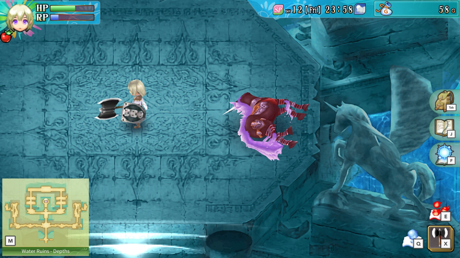 You clear dungeons to progress the plot in Rune Factory 4 Special. Before heading into each one, you need to craft new armor and weapons, which is almost hypnotic in its rhythm. There are a few different kinds of weapons on offer. Swords, hammers and axes, twin daggers, spears, gloves, and rods offer markedly different playstyles. You’ll learn new moves simply by fighting. Most of what you do is connected to rune energy, and it depletes as you use tools and special attacks.