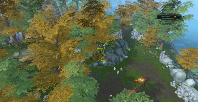 When done right, Moss Golems found in the Lost Grove are arguably the best Slayer task in RuneScape. The setup requires a little bit of work but the task is mostly AFK once you get going. Place either a Dwarven Siege Engine or Dwarf Multicannon in the location seen below. Activate it and then run to the same spot where I’m standing up the nearby hill, as seen in the picture.
