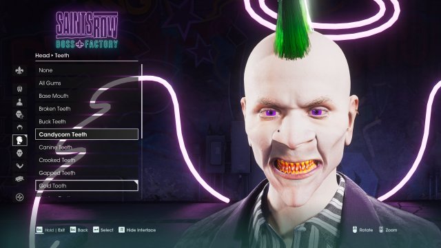 But for those who just want to create something completely off the wall, Boss Factory has you covered. You can create a vampire with candy corn for teeth, or wrap your Boss up in scars to look like Frankenstein’s monster. Skin colors run the gamut, allowing you to Smurf it up or get Shrek’d, or go for full-body chrome. You can also set skin gloss if you want your Boss to look like a freshly licked Jolly Rancher.