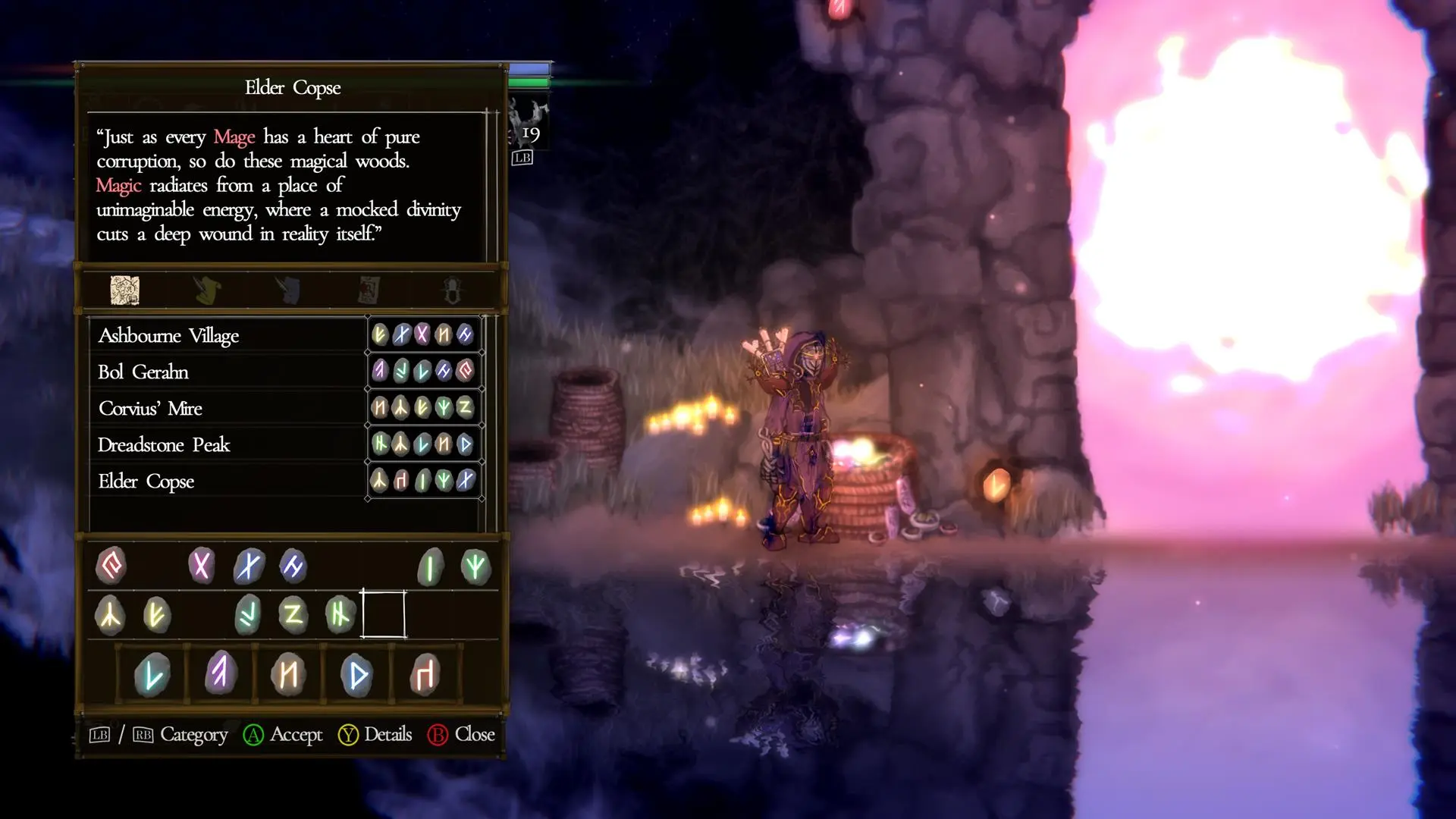 While the vast majority of rune combinations in Salt and Sacrifice are unlocked as you progress through the campaign, the one for Hallowed Hill is different in that it’s off the beaten path. To get there, you’ll want to traverse the Elder Copse zone normally: