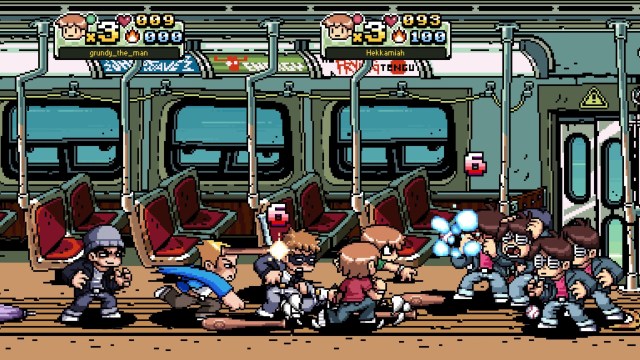 Combat feels a bit on the lacking side when you are first getting started. Standard punches and kicks are all that can be used to dispatch hordes of antagonists. However, throughout the course of normal gameplay, experience points are continuously being banked towards leveling up Scott or any additional party members. Each time you level up leads to an increase in stats as well as the unlocking of a new move. These light RPG mechanics are very reminiscent of classics like River City Ransom.