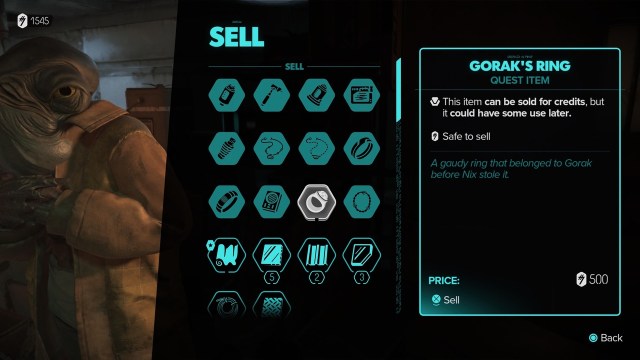 Gorak’s Ring is marked as “safe to sell” when you hover over it at a shop, but the game warns that it could have some use later. Since your reputation with each criminal Syndicate is incredibly important in Star Wars Outlaws, you really don’t want to get on Gorak’s bad side this early in the game. What’s the best move with Gorak’s Ring, then?