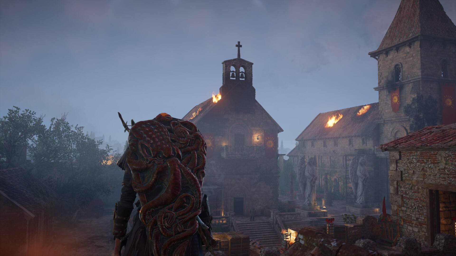Thanks to Eivor’s arrival, he’ll give you the key to the other church. Make your way there by using the statues.