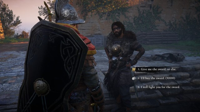 When you reach the area, you’ll find a lone Norse bandit who has the Ulfberht Sword called Egbert. Apparently, he’s been driven mad by greed, killing all his comrades just to keep the weapon.