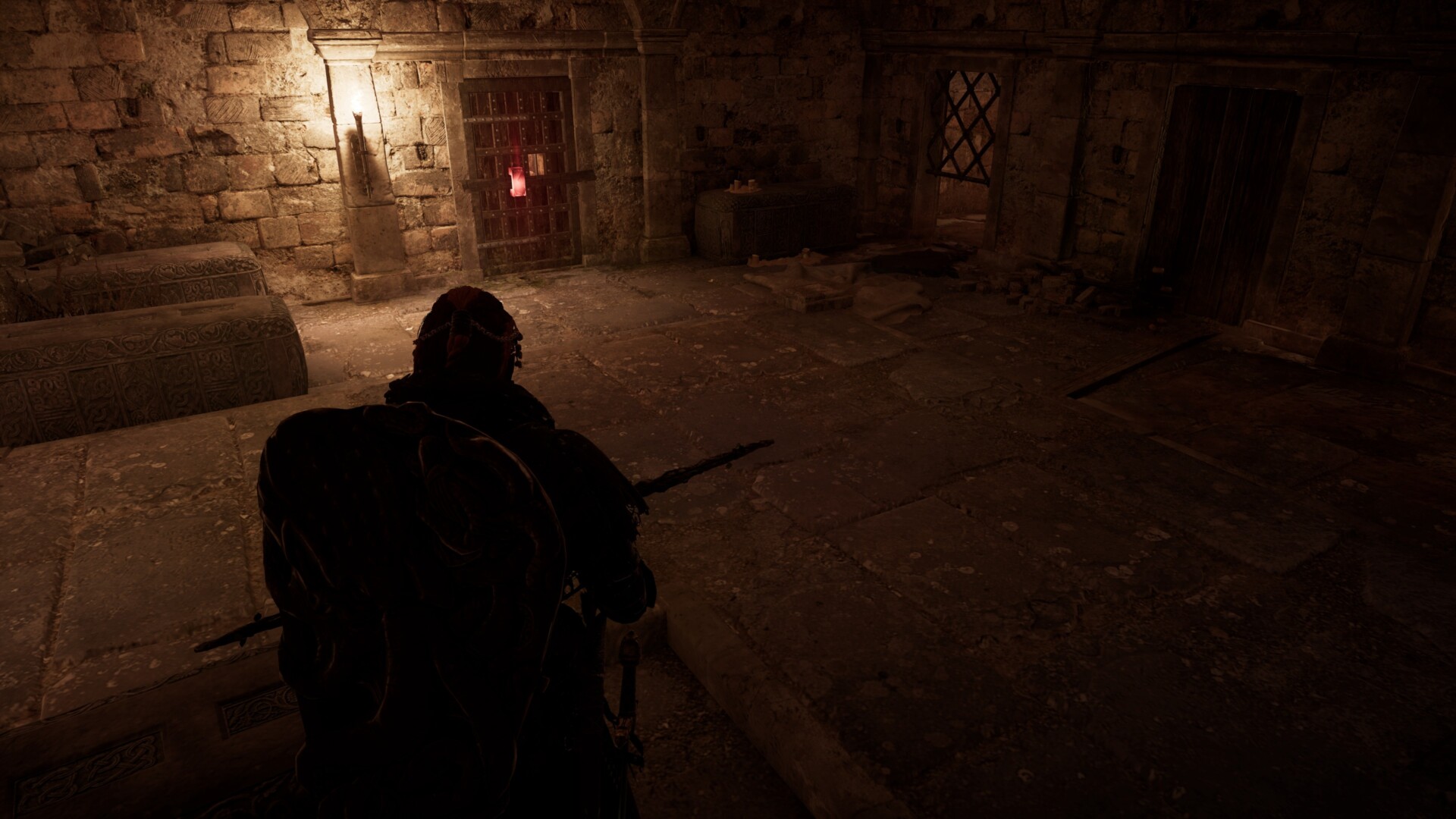 There’s a rat swarm here, and you can slide through the opening off to the side to reach the chest with the Scythe of Tribulation. If you destroy the door’s barricade, it’ll lead to another passage that takes you back to the surface.
