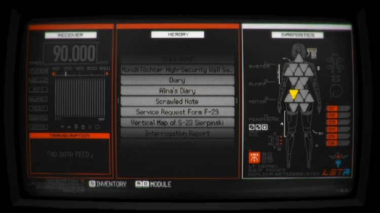 - Open your menu and press the “W” key to see the radio/documents/diagnostics screen. Press “E” to highlight the diagnostics tab, then press the “F” key. This will show Elster’s body and several triangle-shaped symbols. Each symbol becomes highlighted whenever you die.