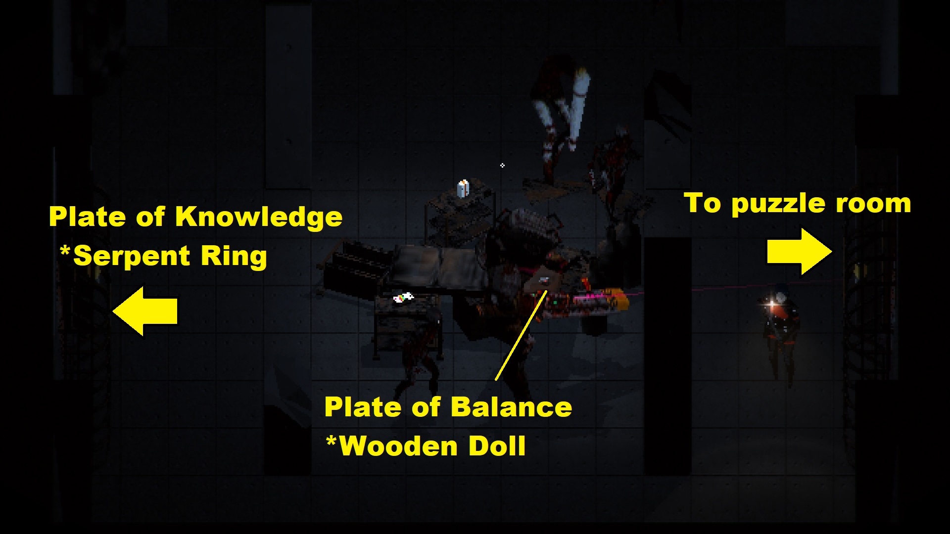 Oh, and lest I forget, if you go to the right of that corridor, you’ll finally arrive at the main chamber for the Nowhere Six Plates Door puzzle in Signalis. Unlock the door here and you’ll end up back in the section with the pulsating flesh pit.