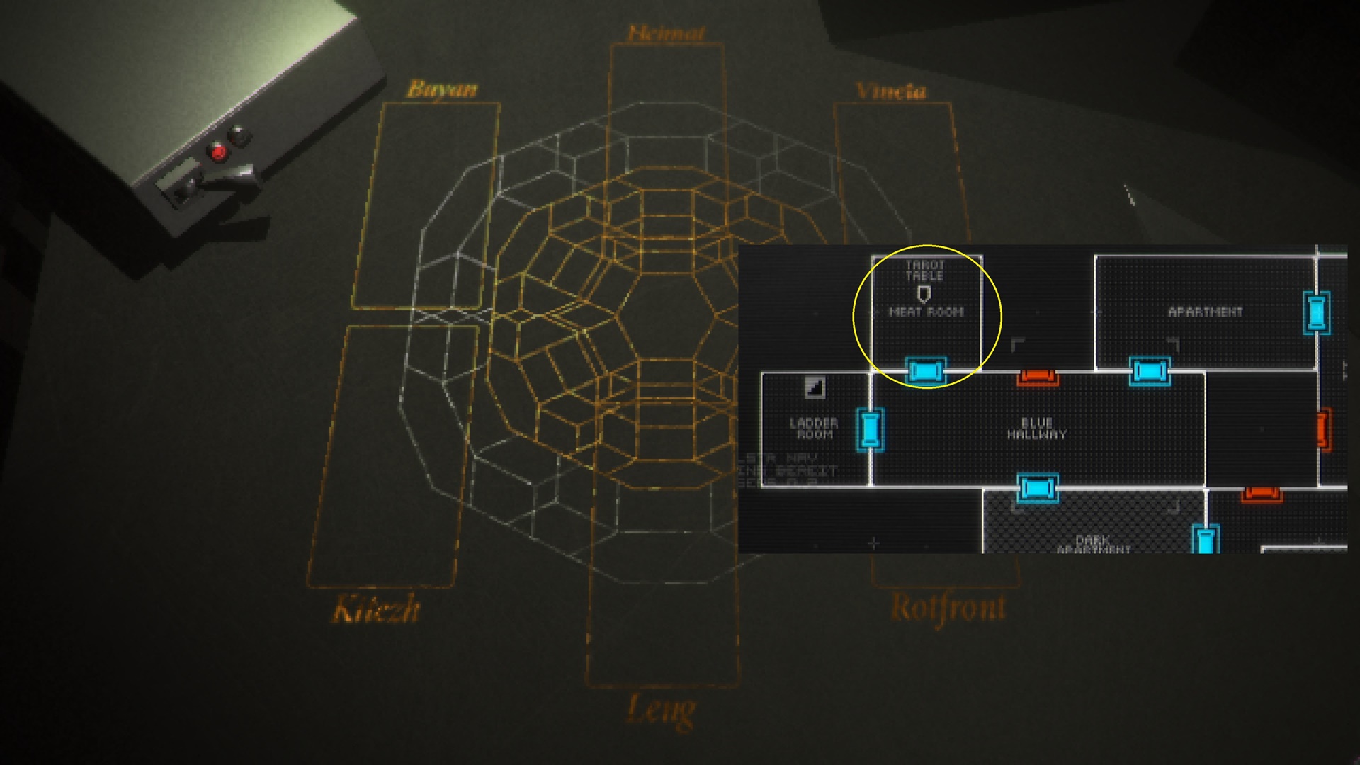 Use the Patient Key to unlock the Meat Room in the western portion of the Apartments (Upper Floor). Inside, you’ll find a Tarot Table where you can place the six cards.