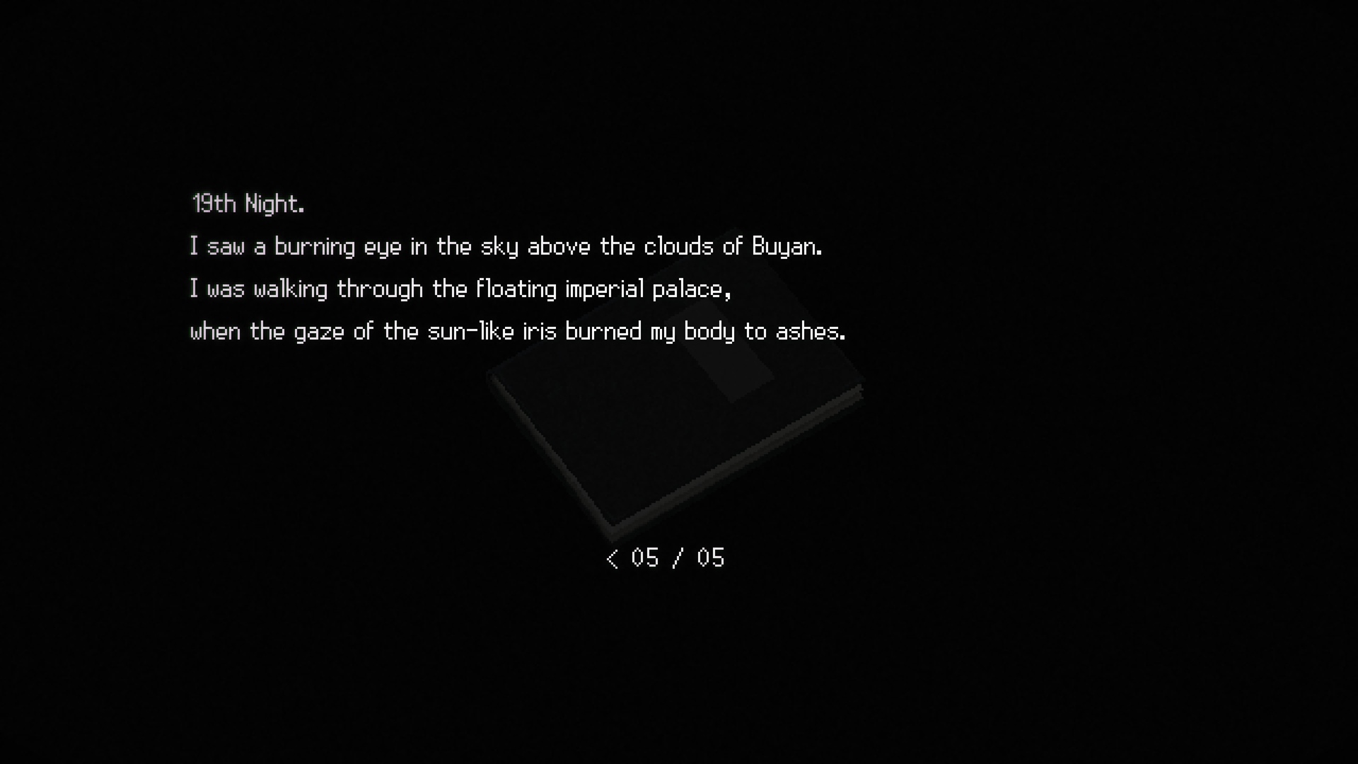 I was walking through the floating imperial palace, when the gaze of the sun-like iris burned my body to ashes.