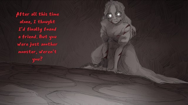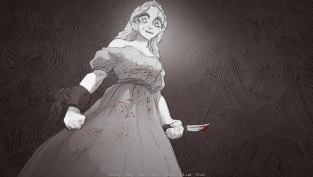 - The Prisoner: Take the knife, but drop it when she asks. Free the princess and resist the narrator.
