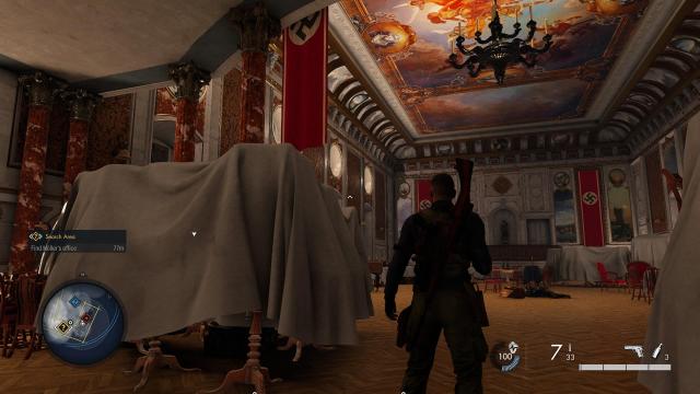 Friedrich Kummler, your Occupied Residence Kill List target in Sniper Elite 5, can be found inside the chateau itself. The challenge requires you to crush him with one of the chandeliers.