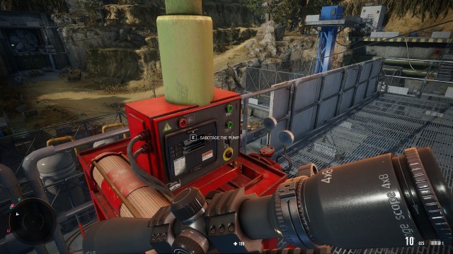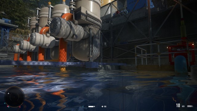 To the east, you’ll find an area that looks like a dam. Your goal here is to find the three water pumps so they can be disabled.
