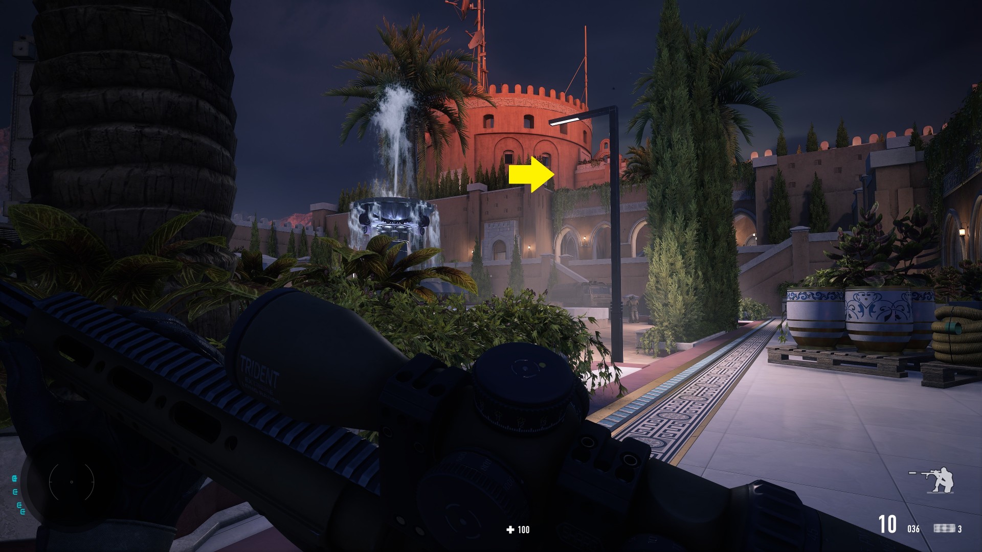 Note: Because the target is fairly close, and all other enemies are nearby, using an explosive bullet automatically puts the entire base on high alert. Likewise, as far as I’ve noticed, killing too many guards in the inner fortress (or maybe a couple of the snipers, like the one in the ruined tower) would somehow cause the alert status too.
