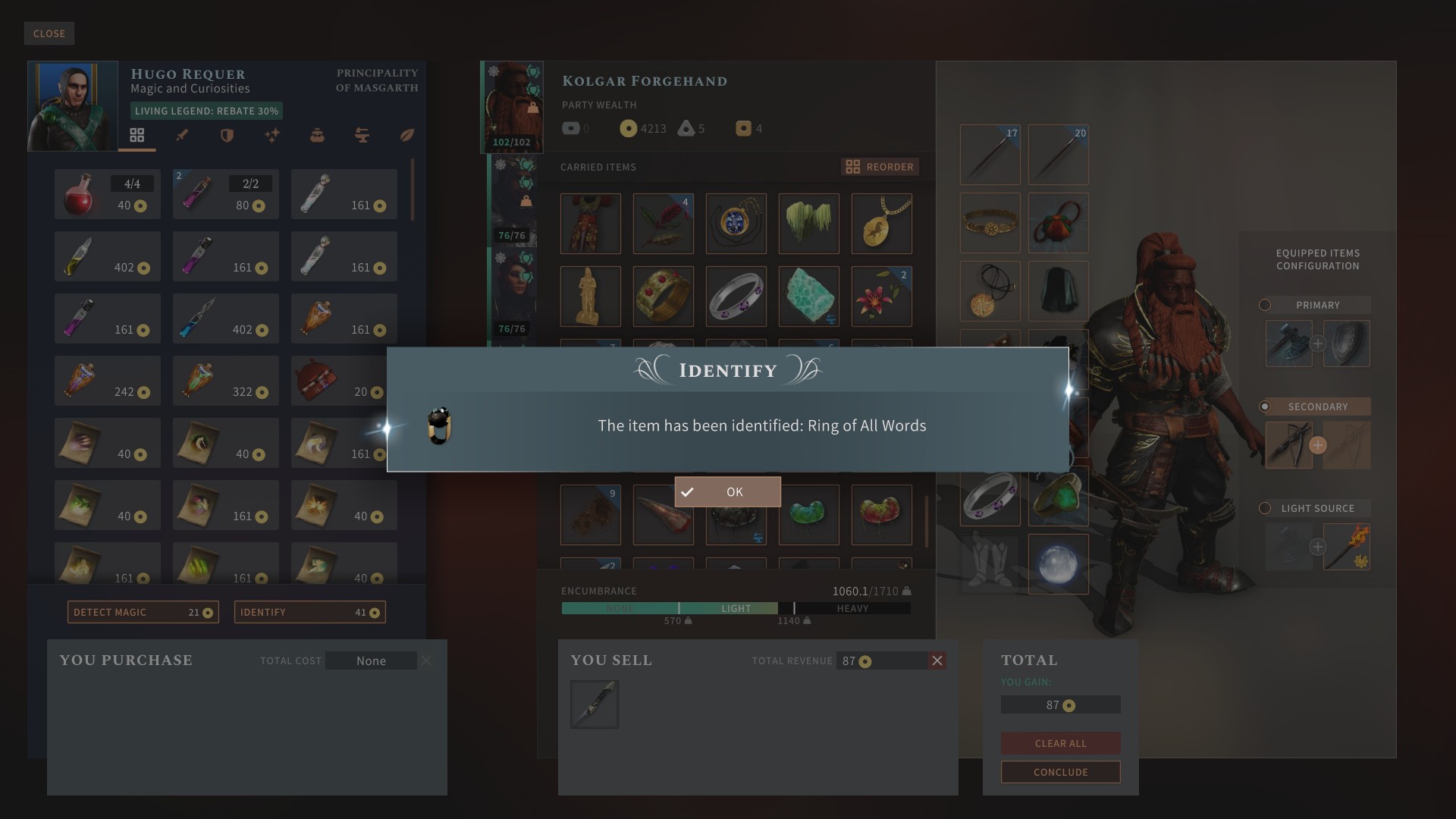 It’s very likely that you’ll pick up countless loot drops as you explore the world of Solasta: Crown of the Magister. Some of these items might have magical properties or they are unknown to you (they have a question mark icon).