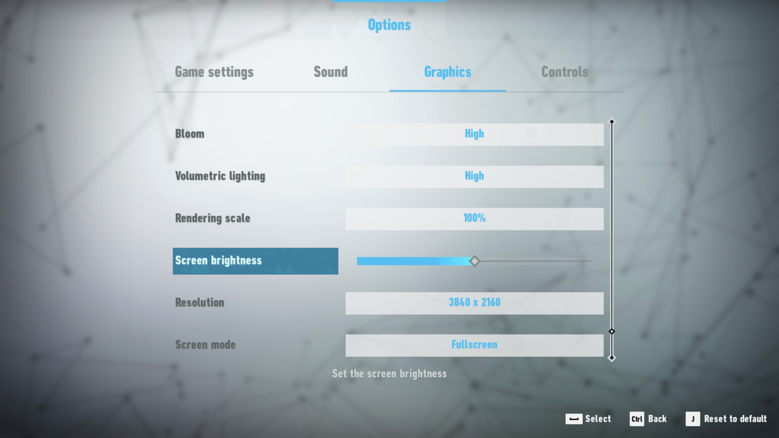 Fullscreen appears to be identical to borderless, despite both options being available next to windowed. With my desktop at 1440p, setting the game to fullscreen at 4K kept it at 1440p. Render scale goes up to 100% but you can’t increase that in case you wanted to do some supersampling natively.