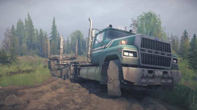 Each of the two new maps is still fairly big. As expected, both have multiple ways to solve the returning objective of delivering lumber to the Lumber Mill. But, what sets the American Wilds content apart are the new vehicles, specifically the transport trucks: the Chevrolet Bison, Ford LTL9000, Freightliner FLD120, and Western Star 6900XD. These big rigs would be right at home in American Truck Simulator, but boy does Spintires: MudRunner put a beating on them. This is due to their design.
