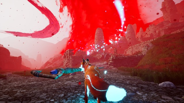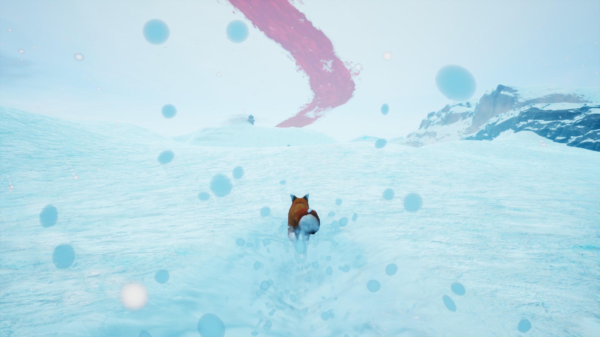Spirit of the North is fairly nice to look at, too. It mostly focuses on natural settings, with snowy fields, wide-open grassy areas, and ruins painted red by the corruption falling from the sky. The game’s story beats focus on the fox meeting a spirit fox and setting off to eliminate spots of corruption to purge it entirely. The corruption is red and the fox’s spirit powers are blue, meaning you’re going to see a lot of really familiar color-coding in the environment. It’s pretty generic, but it gets the job done.